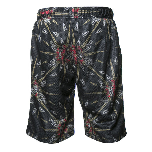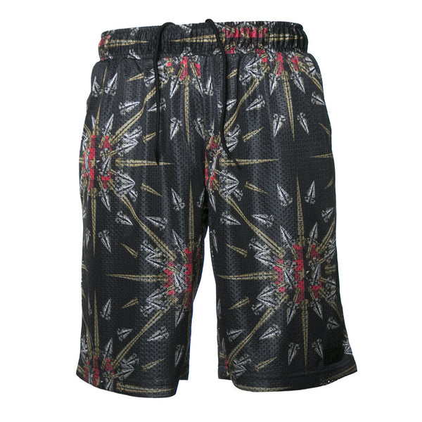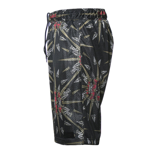 An athletic mesh short with abstract spike print and a drawstring waist closure from the Paris League Capsule. MESH. 641-4103
