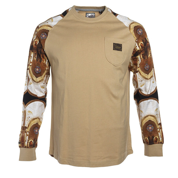 A long sleeve single pocket tee shirt from the OG Capsule with contrasting patterned sleeves and a PC athletic tag on chest. JERSEY 631-8310