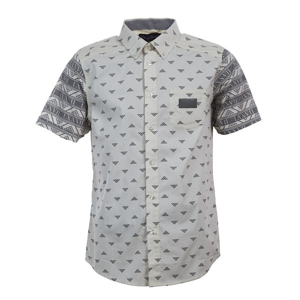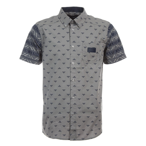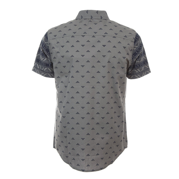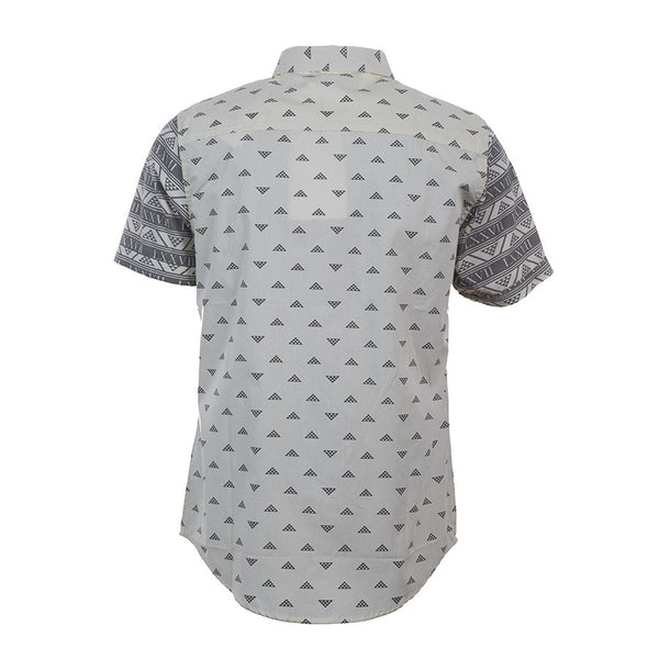 Patterned button up with leather patch detail on chest pocket. POPLIN. 641-2601
